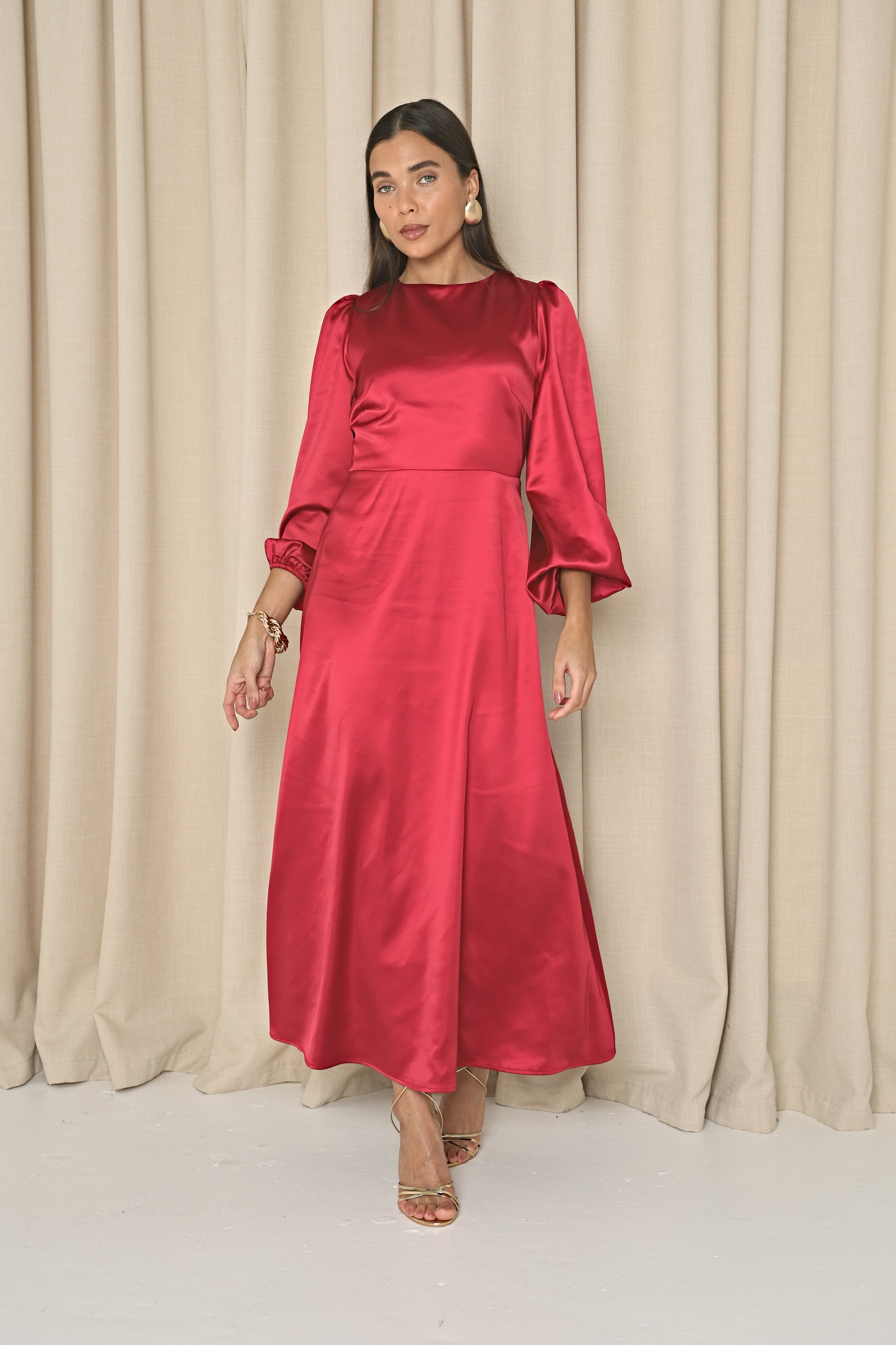 Satin Bow Back Midaxi Dress is a refined and elegant piece designed to captivate with its luxurious fabric and exquisite detailing. This midaxi dress offers a sophisticated blend of classic and contemporary elements, perfect for special occasions and evening events.
